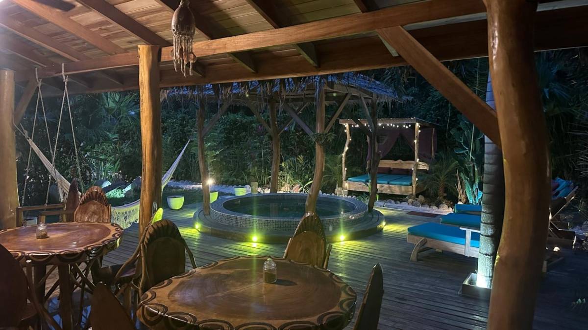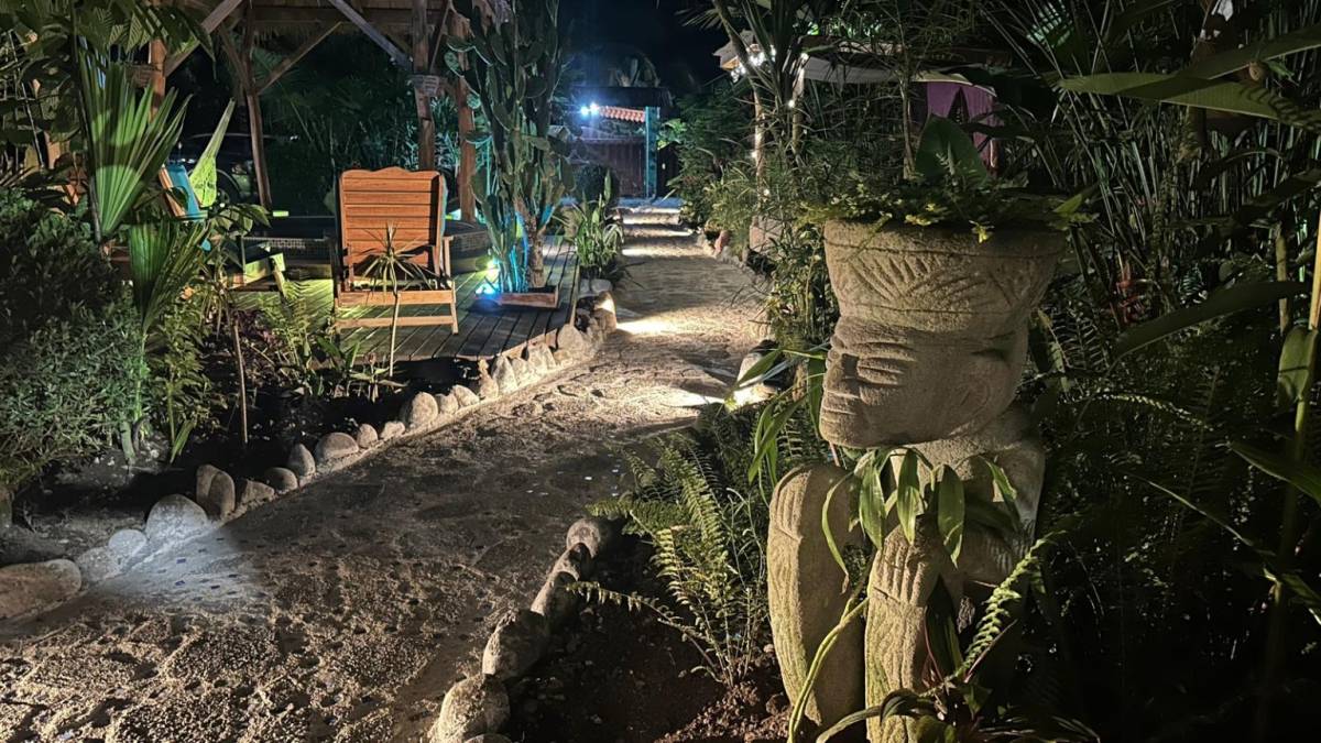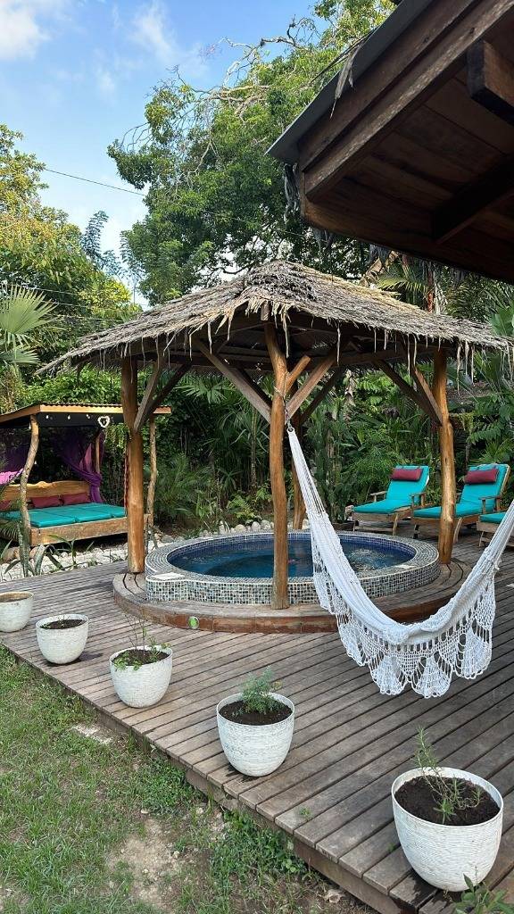 El jardín es un verdadero oasis tropical, rodeado de plantas exóticas, flores y árboles que atraen fauna local como perezosos, monos, tucanes, mariposas y mucho mas. En el área exterior se encuentra un jacuzzi adicional, junto a un espacio acogedor para relajarse, compartir, leer o disfrutar del clima caribeño.